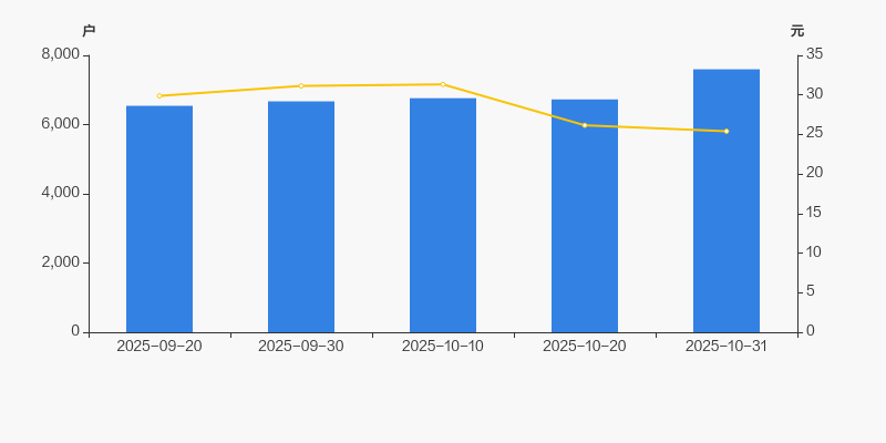 截至2025年10月31日,公司最新流通股本为1.2亿股。户均持有流通股数量由上期的1.78万股下降至1.58万股,户均流通市值40.05万元。