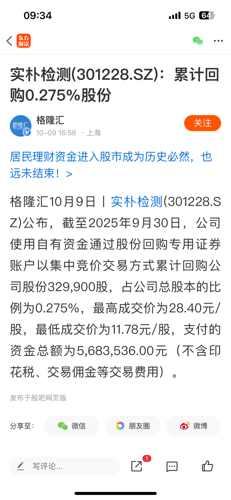 火速解读,10月份实朴以均价为26.61元买入602540股,共花费160394