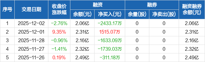 实朴检测:融资净偿还2433.17万元,创历史新高(12-02)