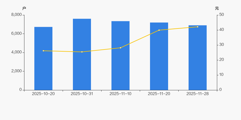 自2025年10月31日以来,公司股东户数连续3期下降,截至目前减幅为9.19%。2025年10月31日至2025年11月28日区间股价上涨65.88%。