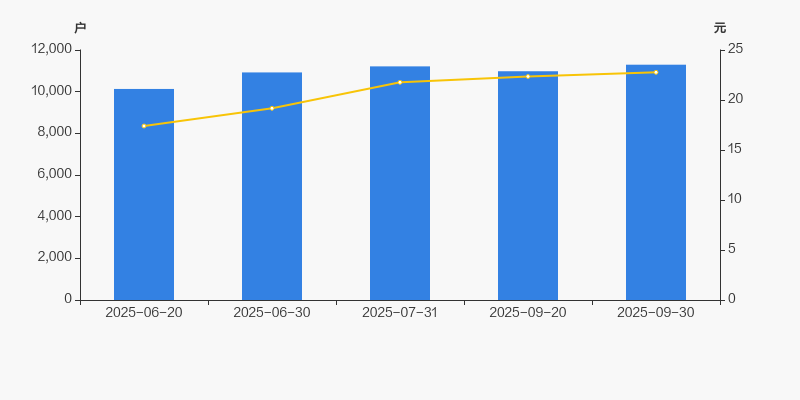 截至2025年9月30日,公司最新总股本为1.61亿股,其中流通股本为1.09亿股。户均持有流通股数量由上期的9840股下降至9657股,户均流通市值21.99万元。