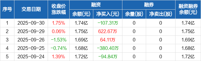 泓博医药:融资净偿还107.31万元,融资余额1.74亿元(09-30)