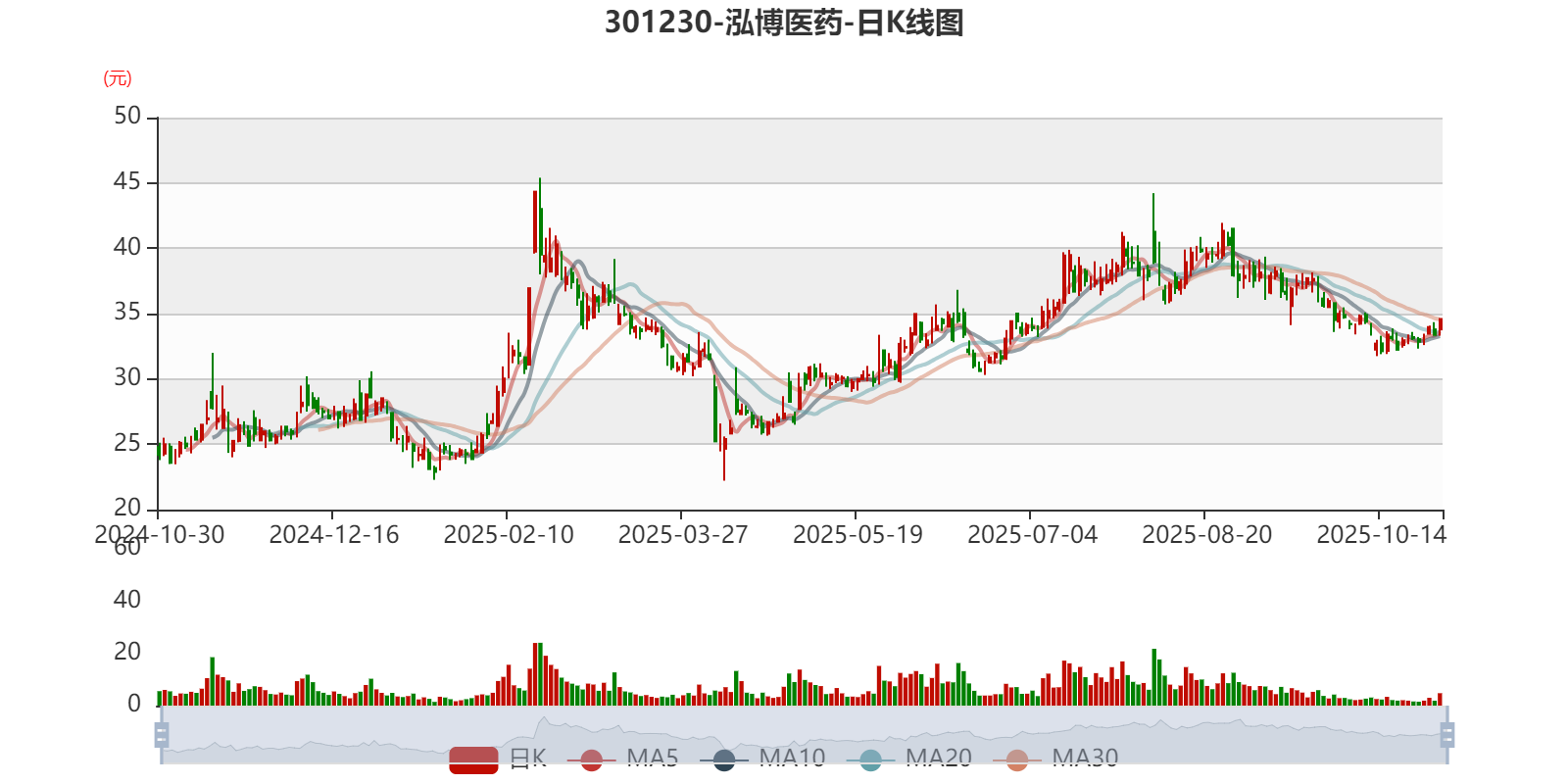 中证智能财讯泓博医药(301230)10月30日披露2025年第三季度报告。前三季度公司实现营业总收入5.14亿元,同比增长31.43%;归母净利润3474.96万元,同比增长127.96%;扣非净利润2770.95万元,同比增长353.43%;经营活动产生的现金流量净额为8251.43万元,同比增长290.93%;报告期内,泓博医药基本每股收益为0.2489元,加权平均净资产收益率为3.30%。