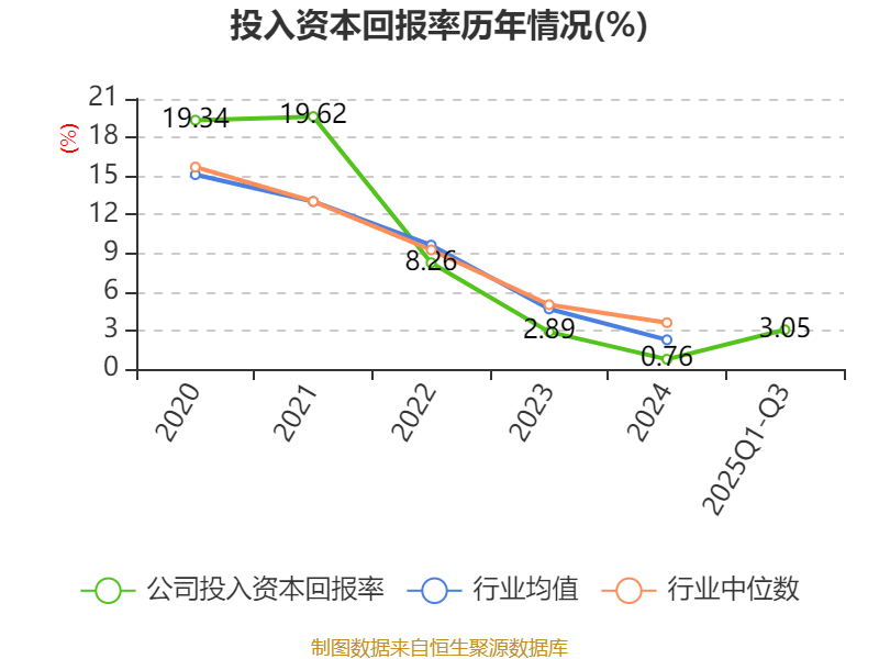 盈利能力方面, 2025年前三季度公司加权平均净资产收益率为3.3%,同比上升1.92个百分点。公司2025年前三季度投入资本回报率为3.05%,较上年同期上升2.2个百分点。