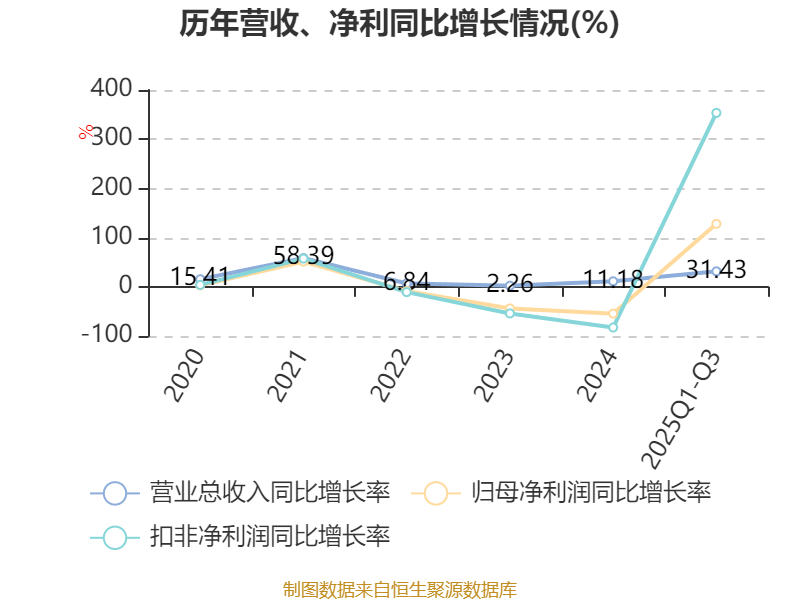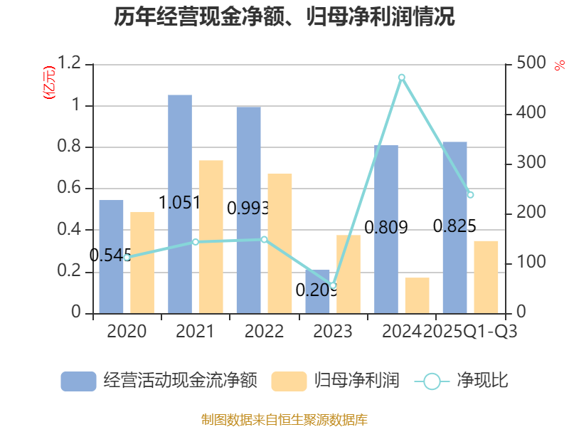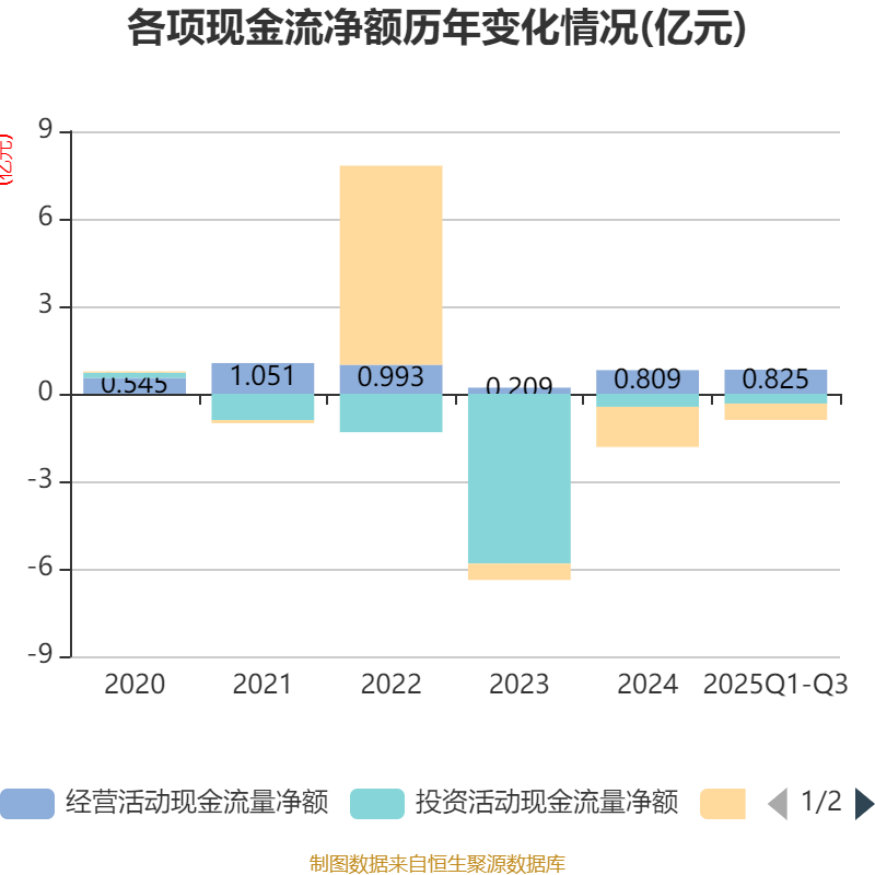 2025年前三季度,公司经营活动现金流净额为8251.43万元,同比增长290.93%;筹资活动现金流净额-5601.85万元,同比增加5496.87万元;投资活动现金流净额-3358.92万元,上年同期为709.3万元。
