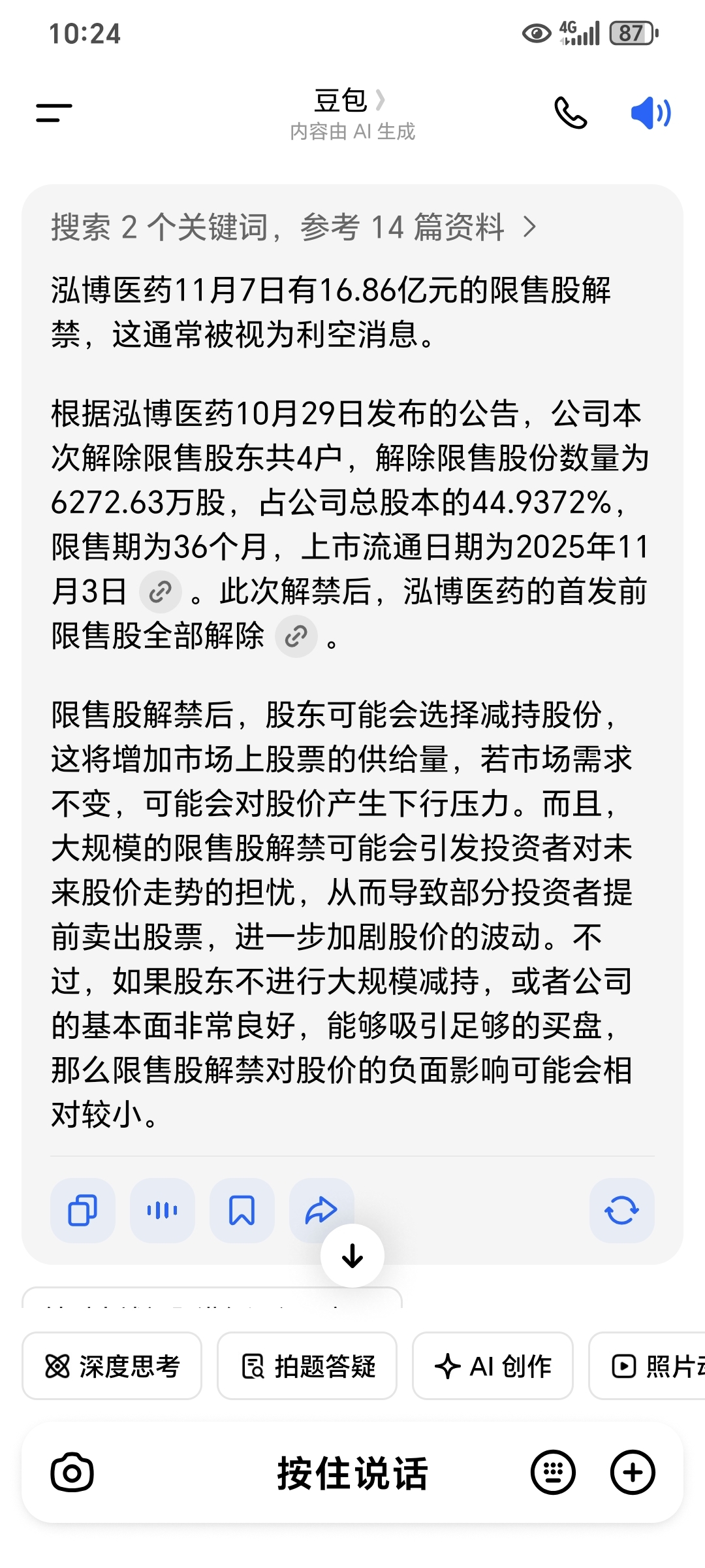 $泓博医药(SZ301230)$ 泓博医药大利空消息又来了