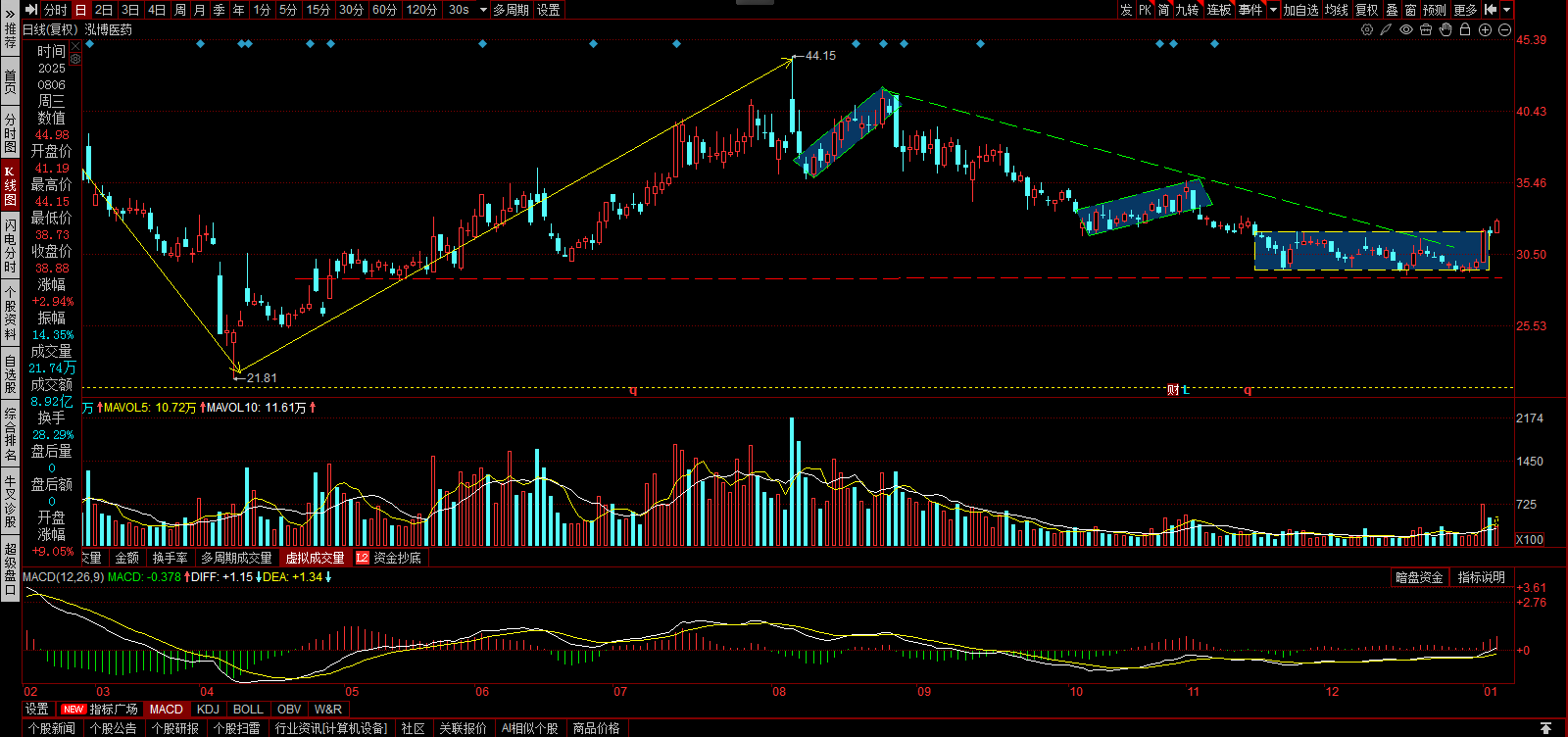 泓博医药,趋势反转,强势拉升。