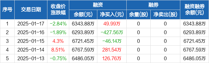 荣信文化:融资净买入49.99万元,融资余额6343.88万元(01-17)