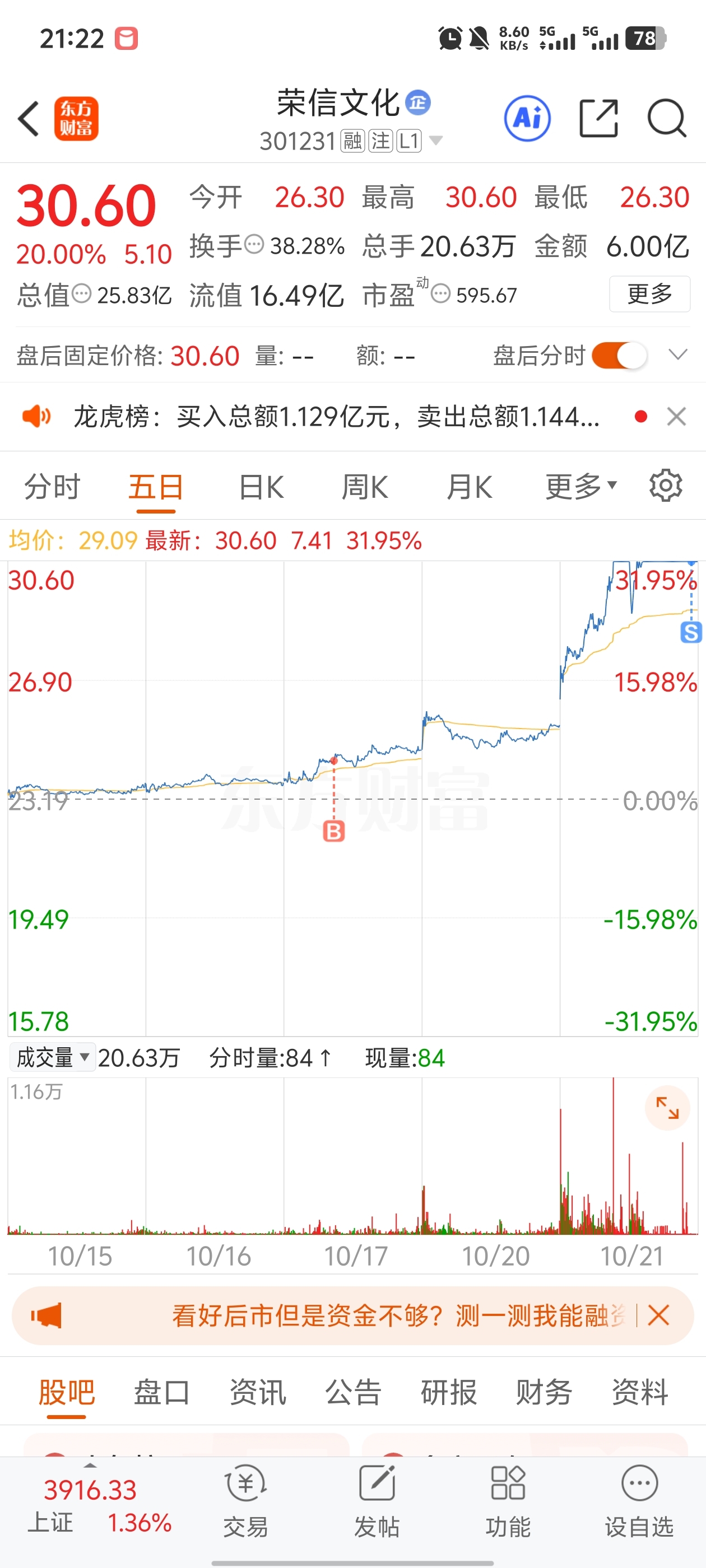 $荣信文化(SZ301231)$ 会是卖飞吗?盈利 25 个点出的
