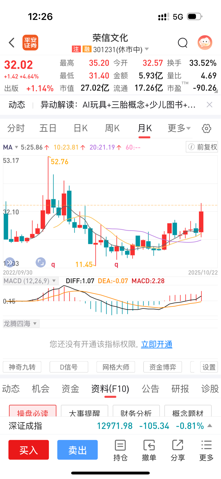 月线很健康,追的有点高就怕拿不住,拿的住问题不大