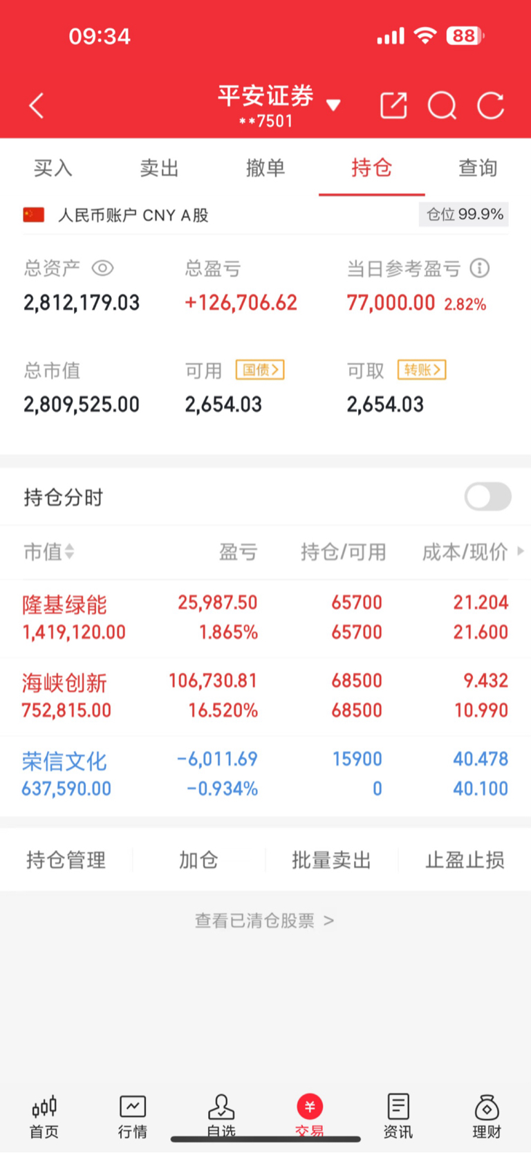 当前持仓 = $隆基绿能(SH601012)$ $海峡创新(SZ300300)$
