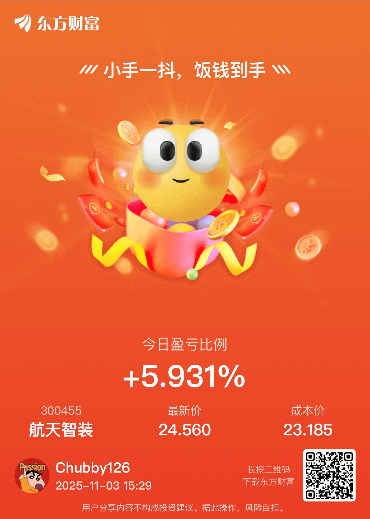 哈哈,被大佬肯定了,今天可以加个鸡腿!运气不错,希望明天继续给力。$荣信文化(SZ301231)$