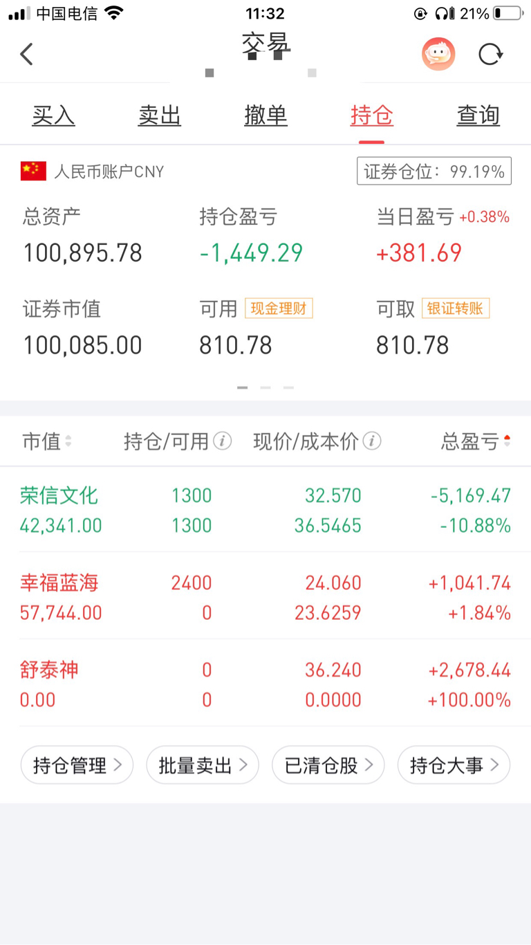 早上没卖亏死,舒神泰挣8个点都下去了,舒神泰出了补了幸福蓝海。