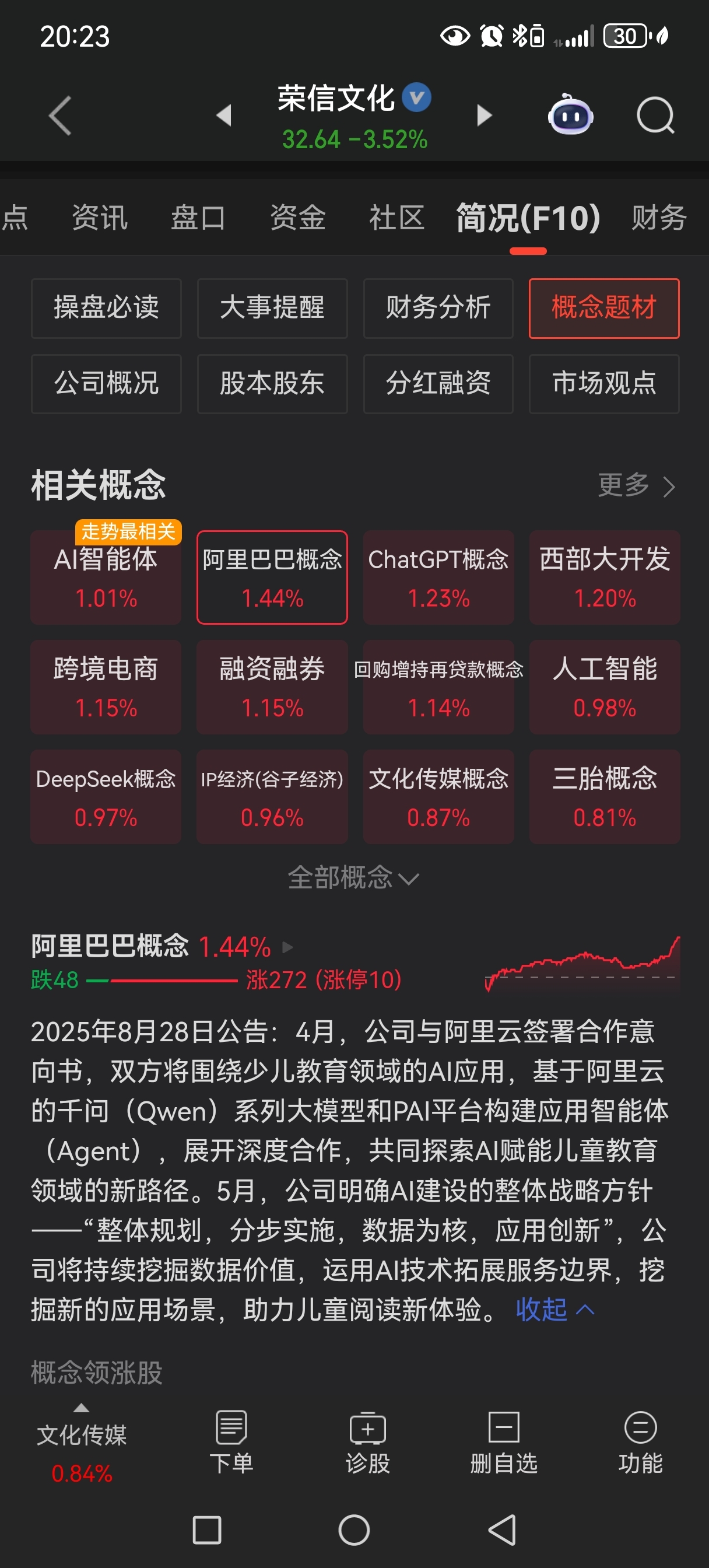 明天见证今天我重手加仓的威力吧!虽然我是出于气愤与直觉而不是基于任何技术或消息。荣信文化是阿里千问计划战略合作伙伴,而今晚,阿里巴巴美股大涨,因为最新消息:阿里巴巴已秘密启动“千问”项目,基于Qwen最强模型打造一款同名个人AI助手——千问APP,全面对标ChatGPT,加入全球AI应用的顶级竞赛。明天,一起见证折磨后的欣悦吧朋友们!
