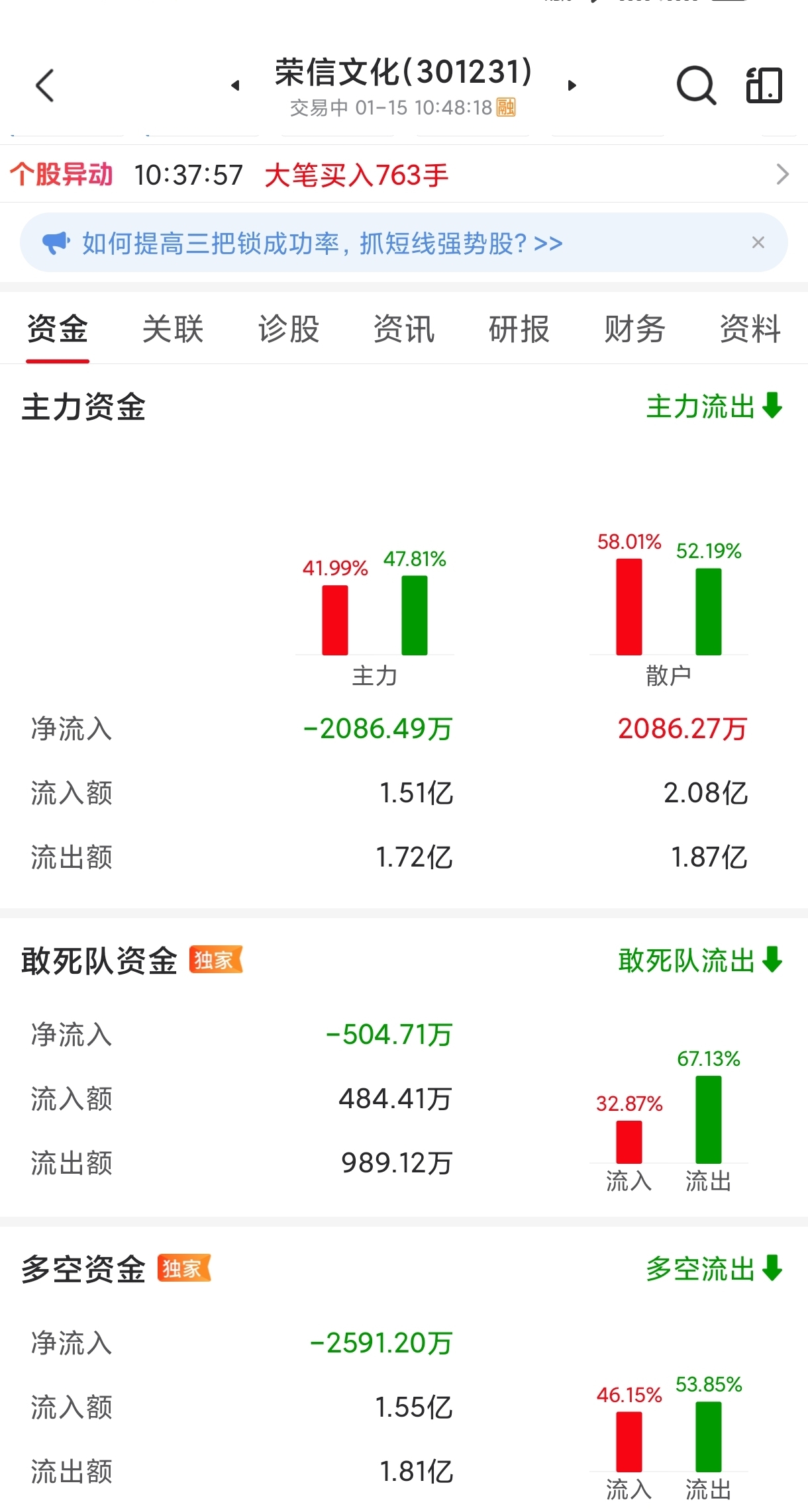 $荣信文化(SZ301231)$ 猛啊,抄底大军