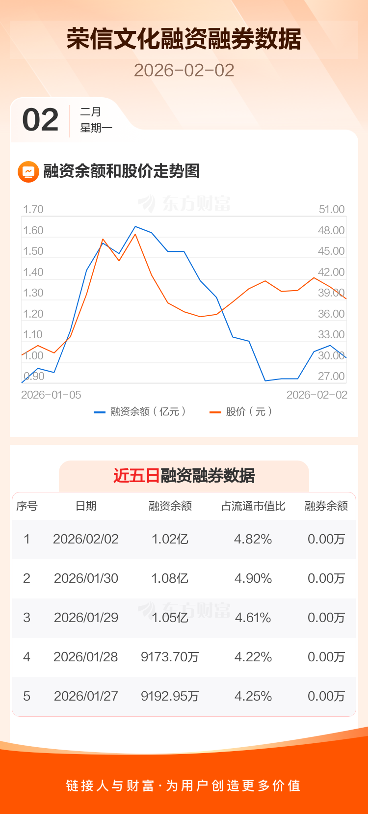 交易所最新数据显示,荣信文化于2026年2月2日获融资买入972.57万元,融资偿还1596.97万元,当日融资净偿还624.4万元。目前,该股融资余额1.02亿,占流通市值比例为4.82%。