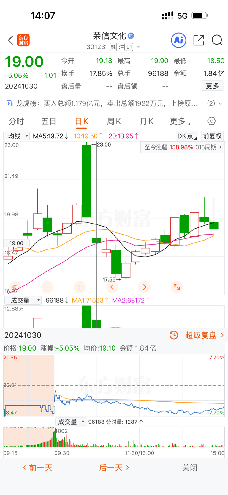 $荣信文化(SZ301231)$ 明天肯定就像这个走势,低开低走