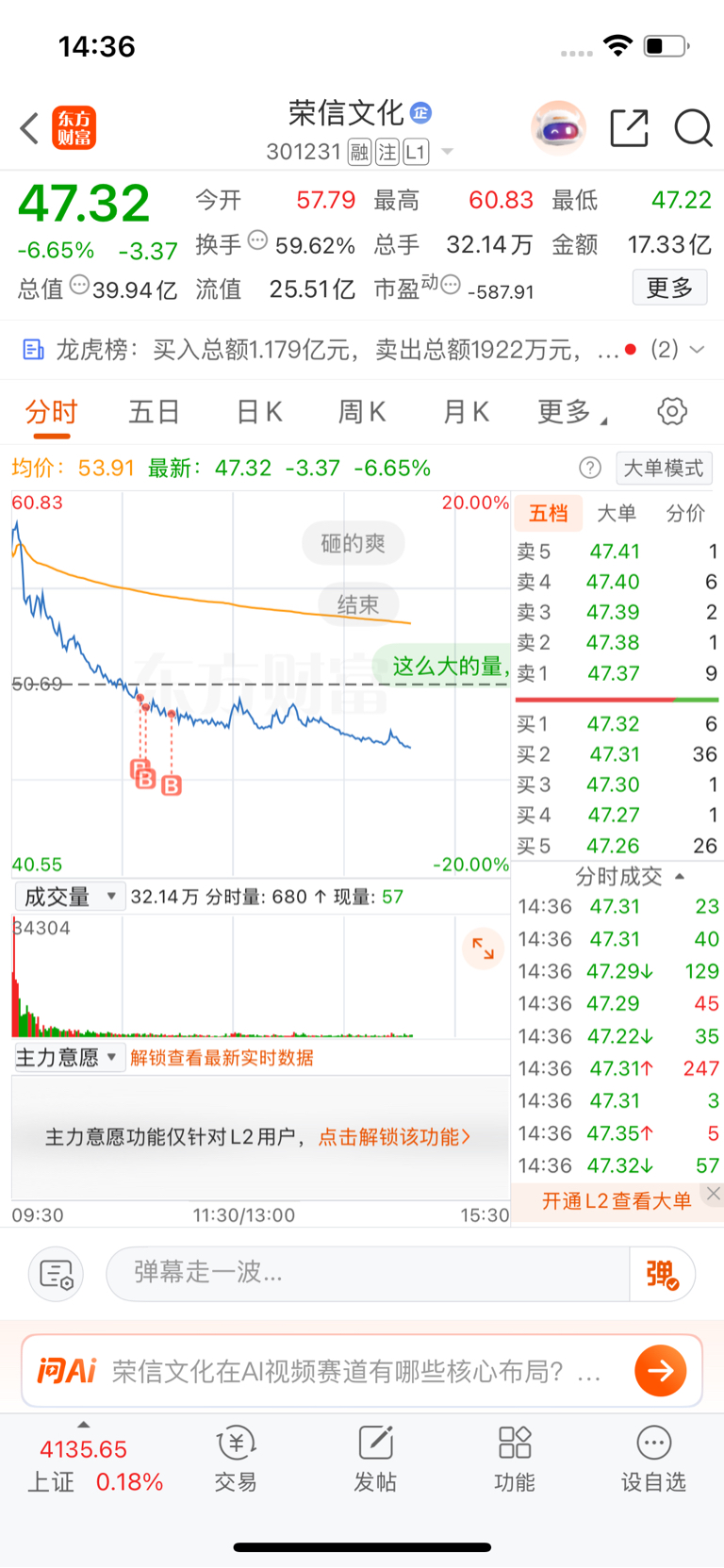 $荣信文化(SZ301231)$ 这都能亏五个点