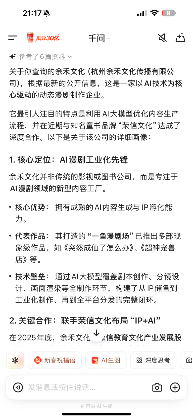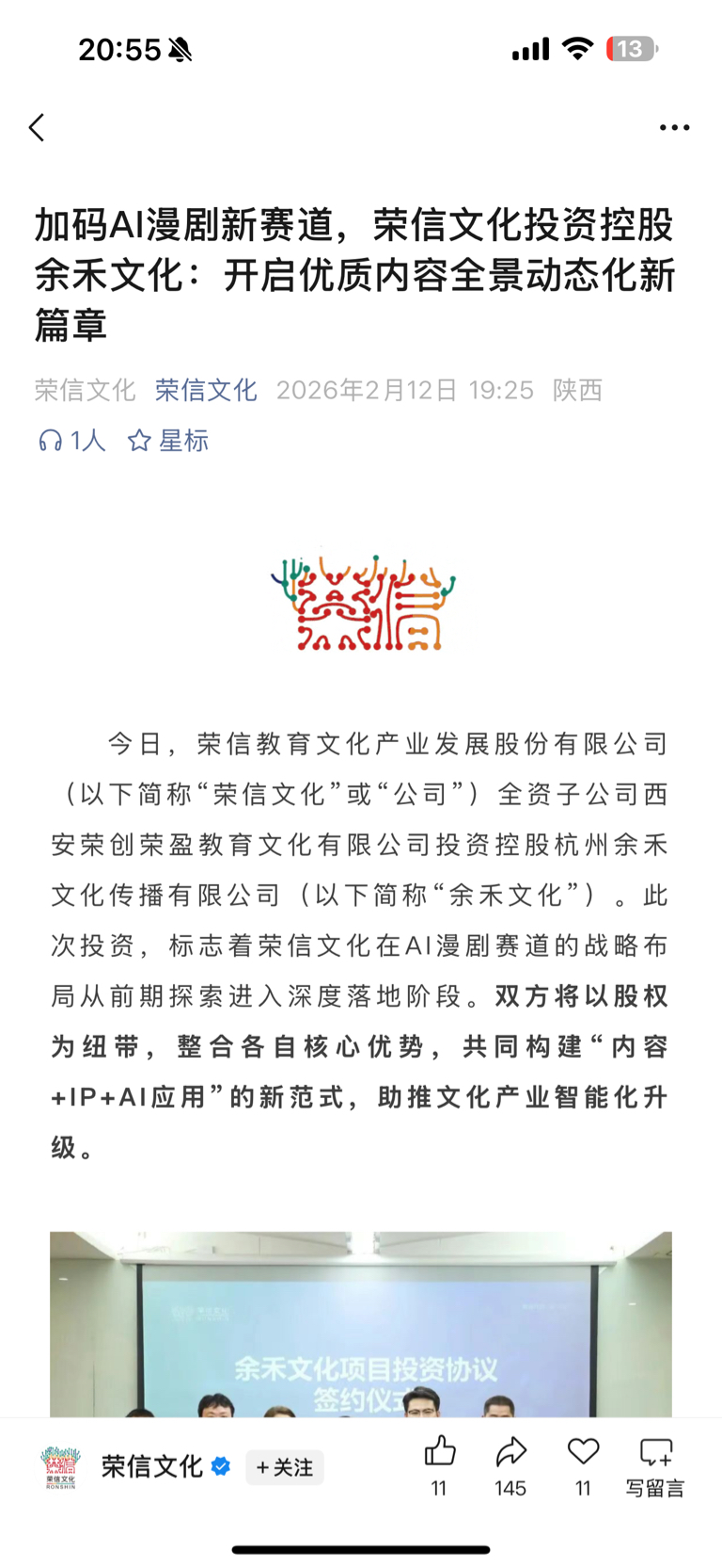 投资并且控股一家AI漫剧制作公司。这行动力