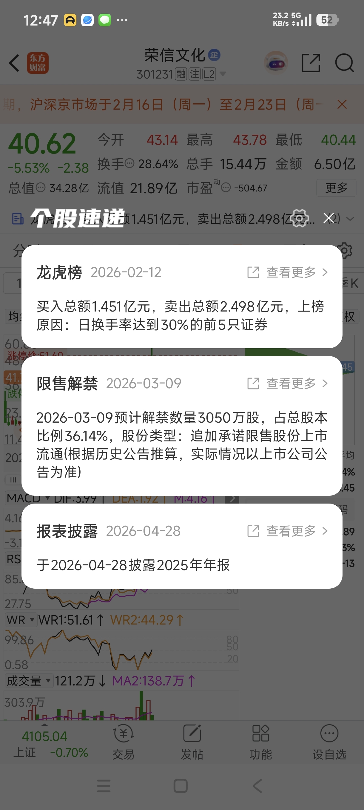 $荣信文化(SZ301231)$ 解禁占百分之三十六,这不得跌啊!这个位置他们不跑吗