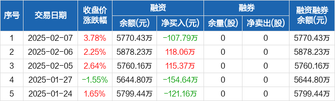 飞沃科技:融资净偿还107.79万元,融资余额5770.43万元(02-07)