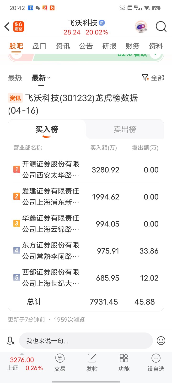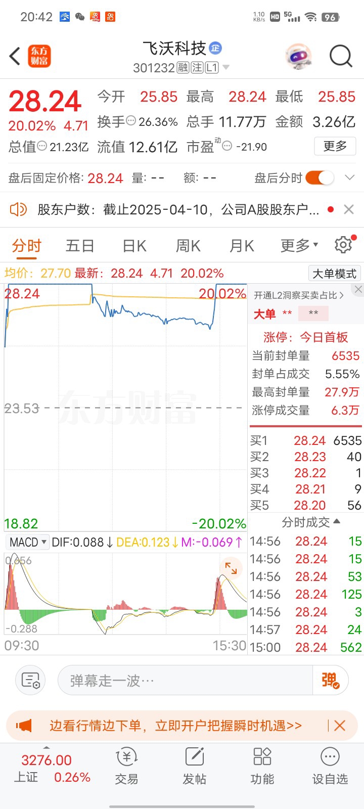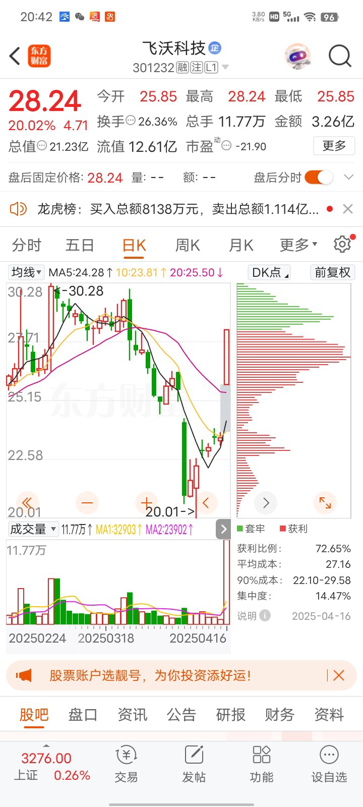 $飞沃科技(SZ301232)$ 明天有肉吃吗各位股友