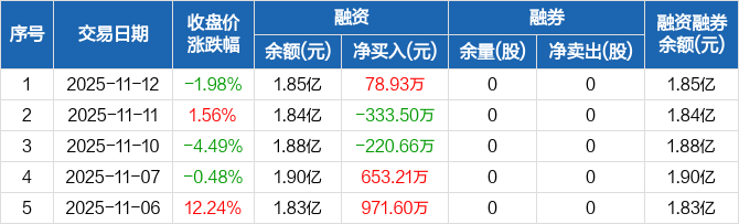 飞沃科技:融资净买入78.93万元,融资余额1.85亿元(11-12)