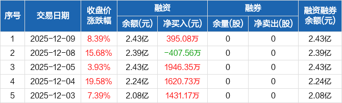 飞沃科技:融资净买入395.08万元,融资余额2.43亿元(12-09)