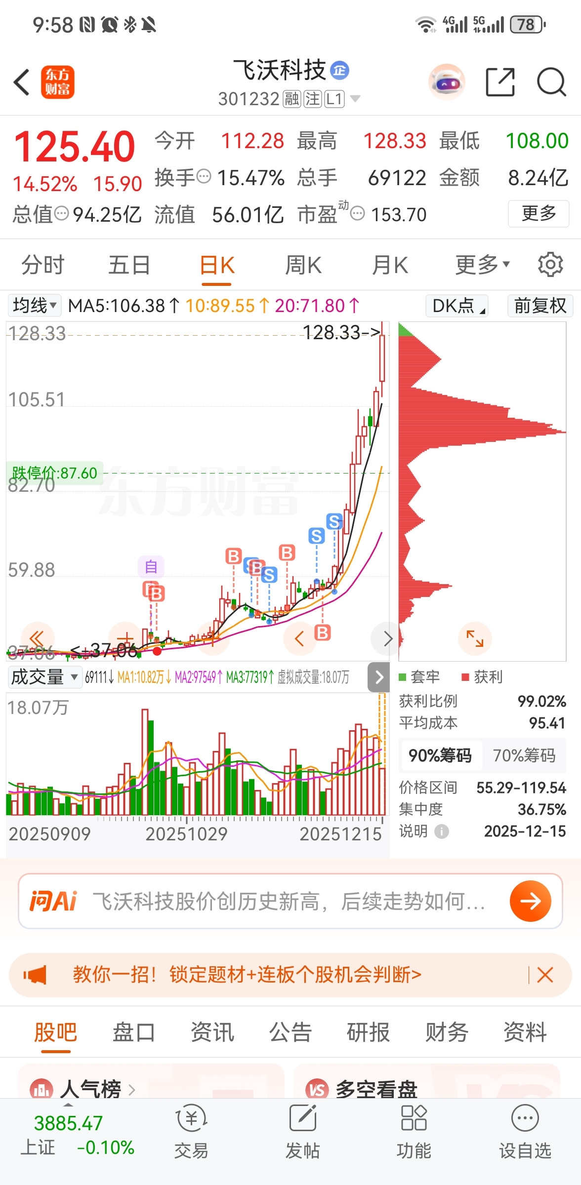 $飞沃科技(SZ301232)$ 我不就是做个T而已,连车都上不去