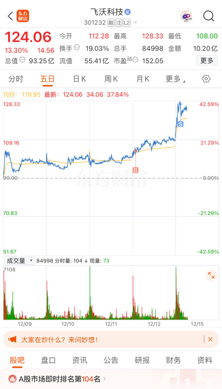 $飞沃科技(SZ301232)$ 超短,俩交易日赚20个点了,一群小学生还在傻乎乎算什么异动,大资金不比你们更懂?