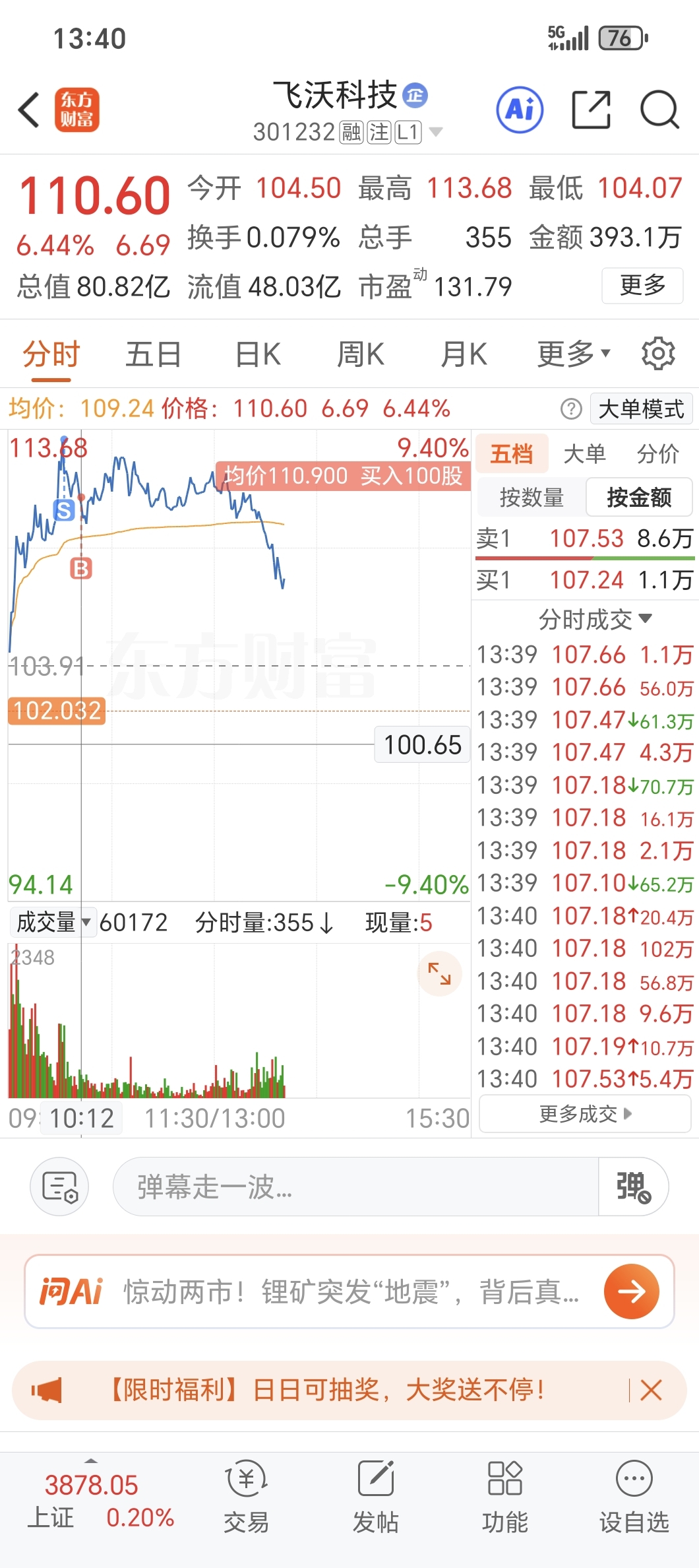 $飞沃科技(SZ301232)$ 砸吧随便砸 哈哈哈哈 我就一手
