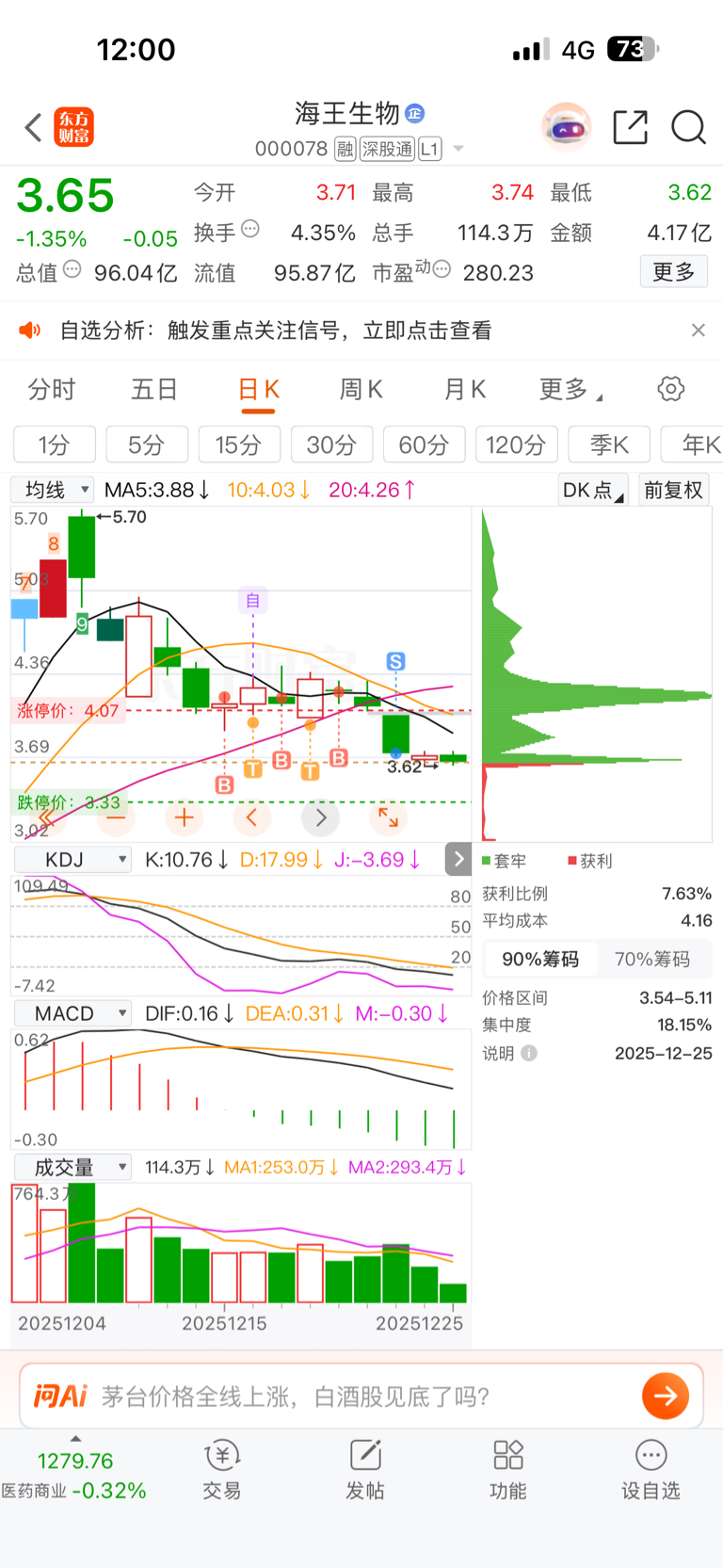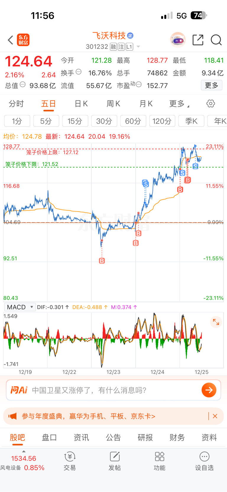 前天海王吃了个跌停!还好果断割肉买入飞沃科技!2天回来了!继续!12月就看你了!