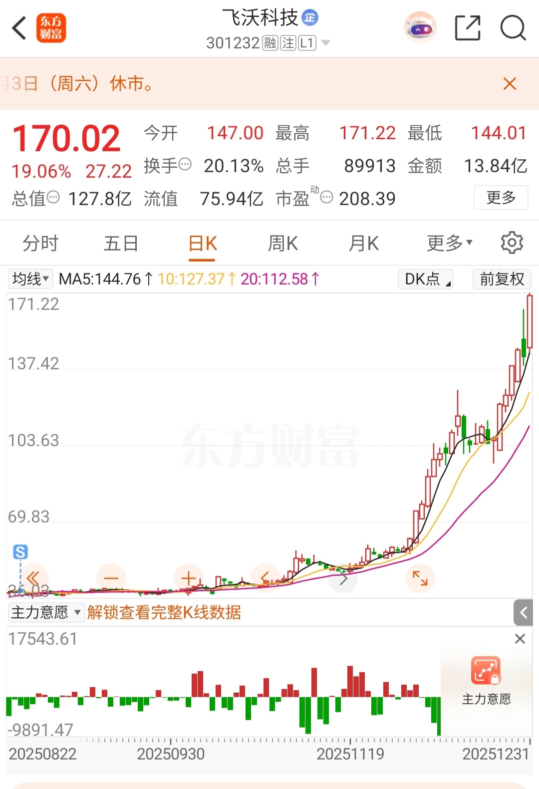 $飞沃科技(SZ301232)$ 命里无财
