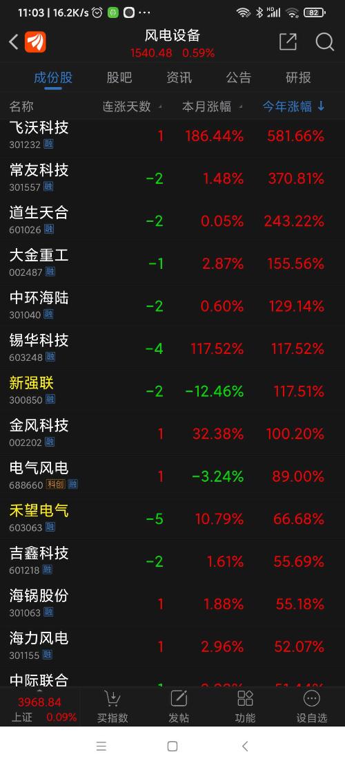 飞沃科技,25年湖南板块、风电板块第一牛股,沪深股市板块第六牛股,牛逼风光得狠呐