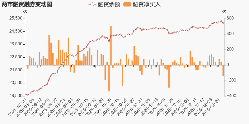 两市融资余额较前一交易日减少143.46亿元,融资余额2.52万亿元(12-31)
