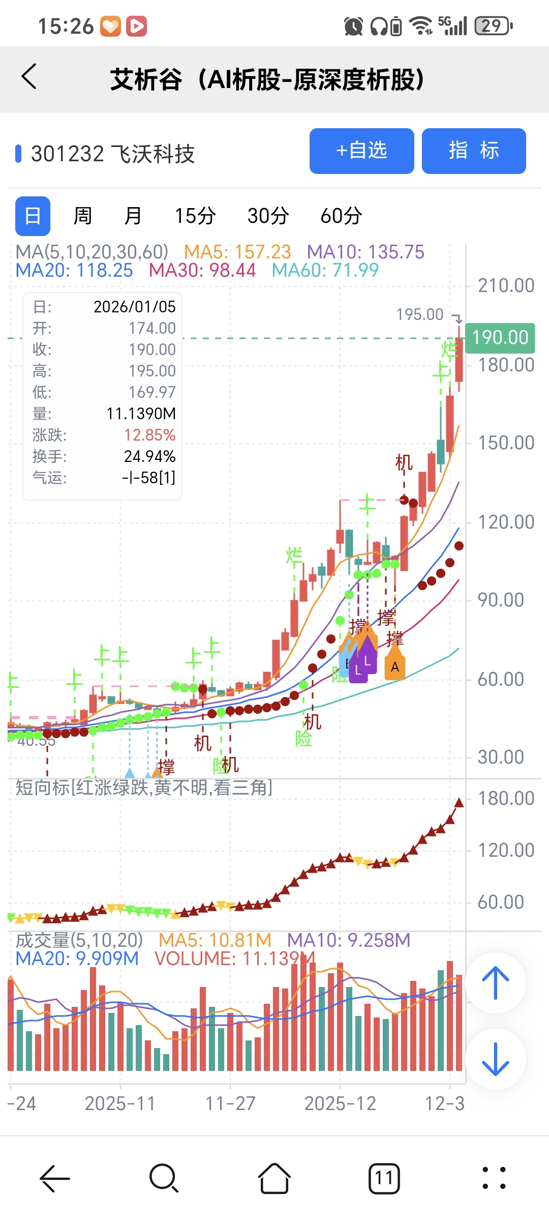 风险:股价下穿艾短波或红变绿、绿字。