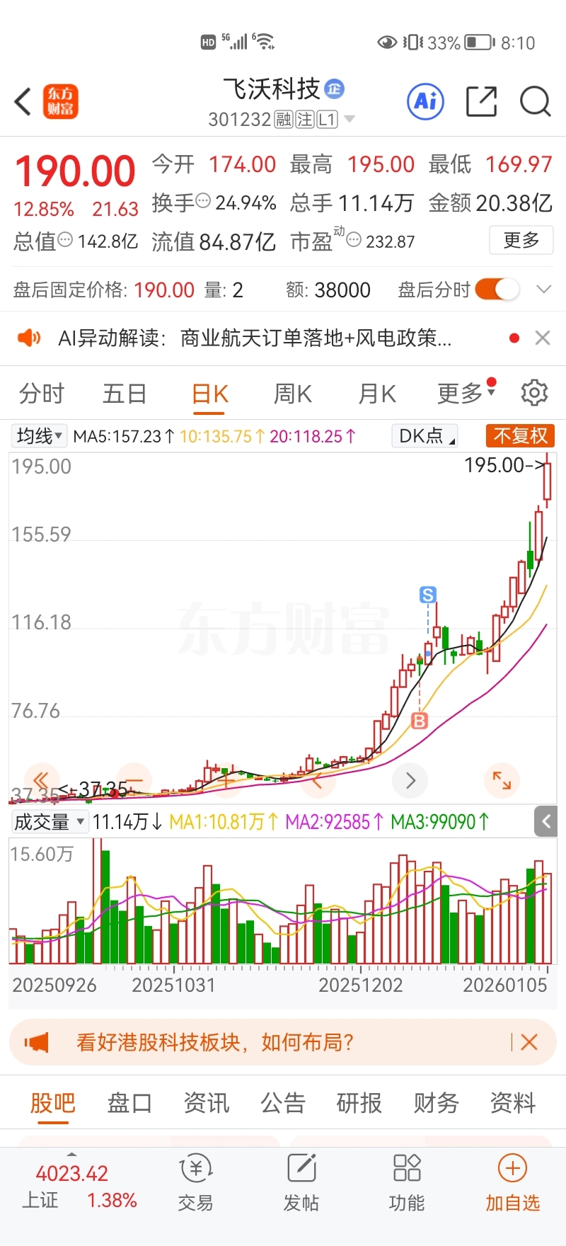 $飞沃科技(SZ301232)$ 回来看一眼,我TM!!