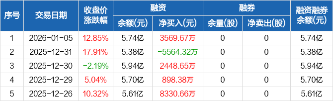 飞沃科技:融资净买入3569.67万元,融资余额5.74亿元(01-05)