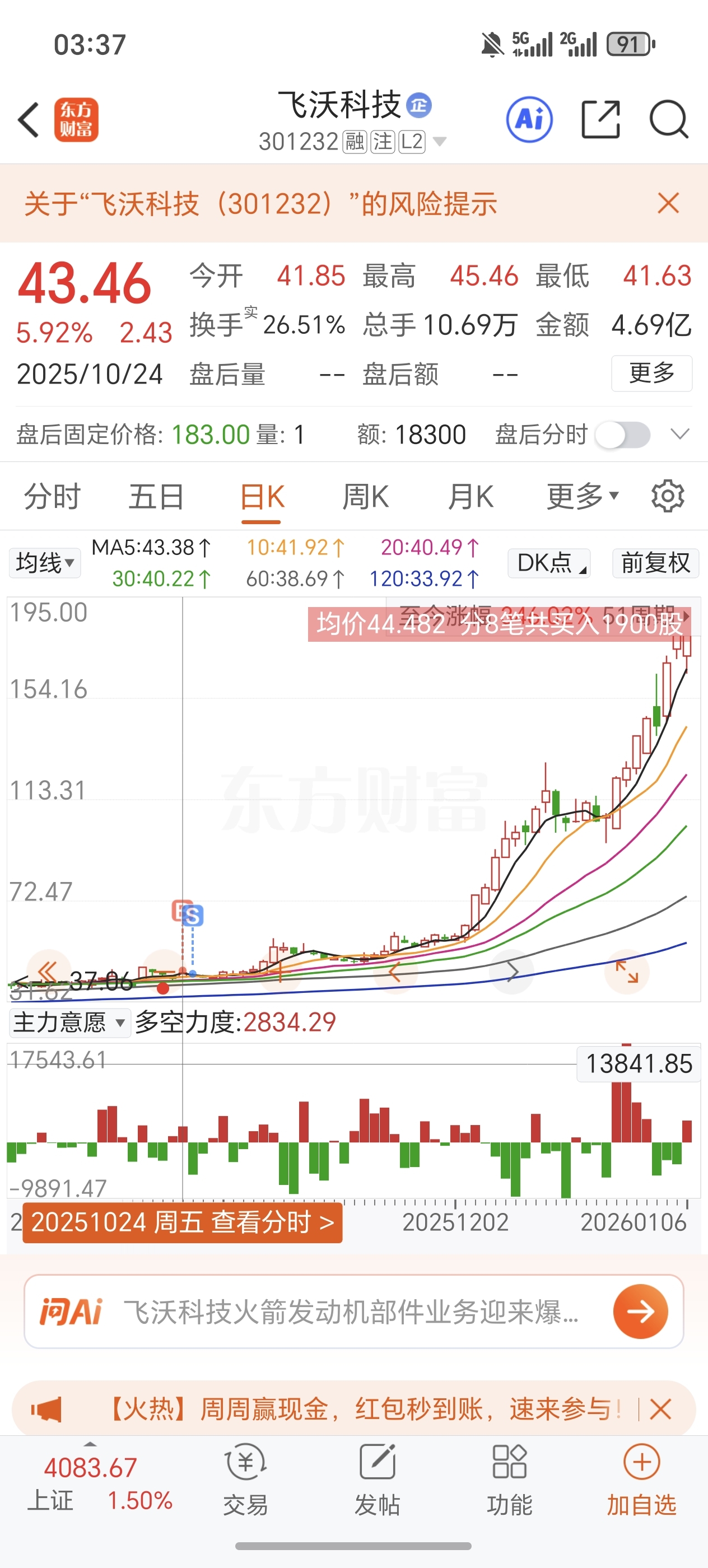 $飞沃科技(SZ301232)$ 我真菜