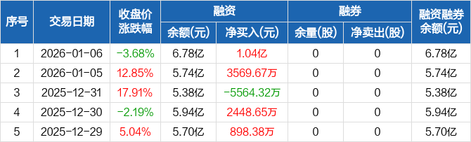 飞沃科技:融资余额6.78亿元,创历史新高(01-06)