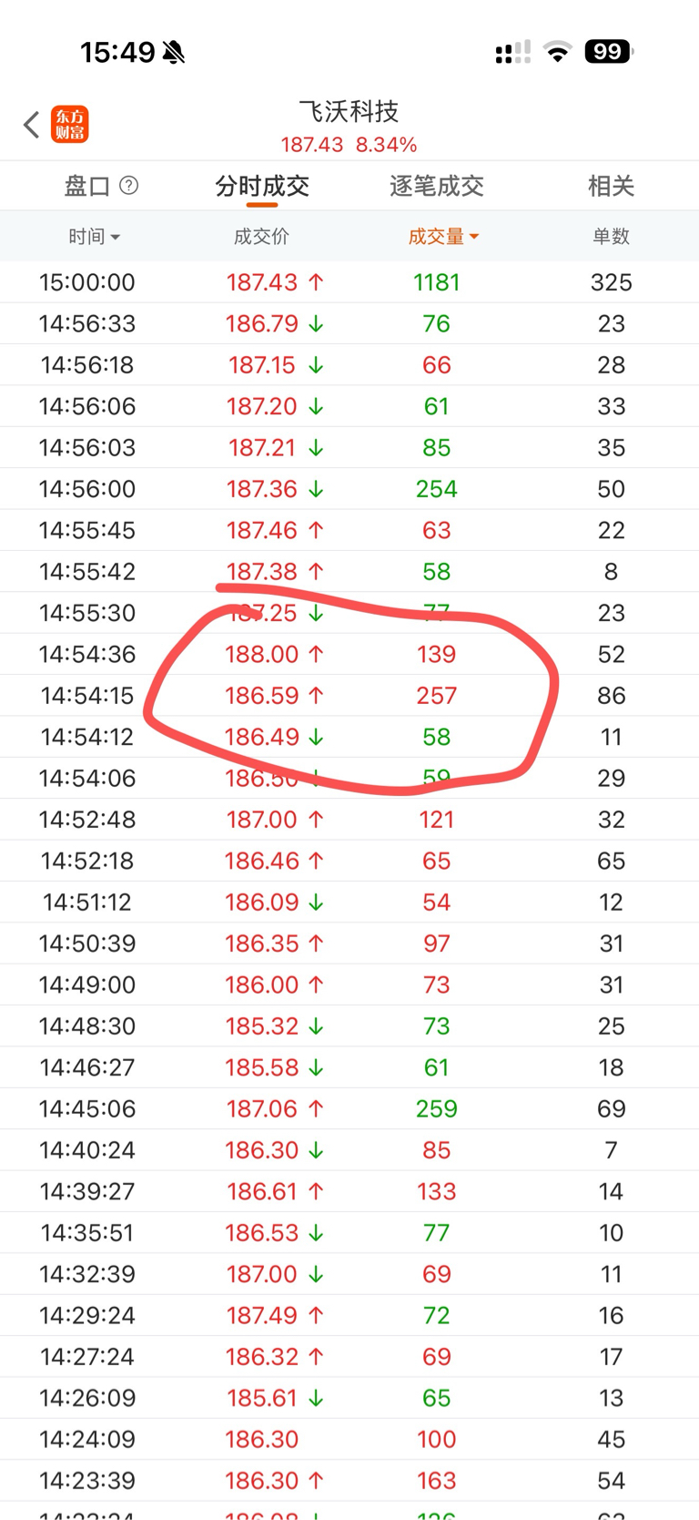 $飞沃科技(SZ301232)$ 一直在186徘徊,我挂高188.结果马上就拉起来把我的筹码吃掉了,主力就缺我这50万筹码吗?