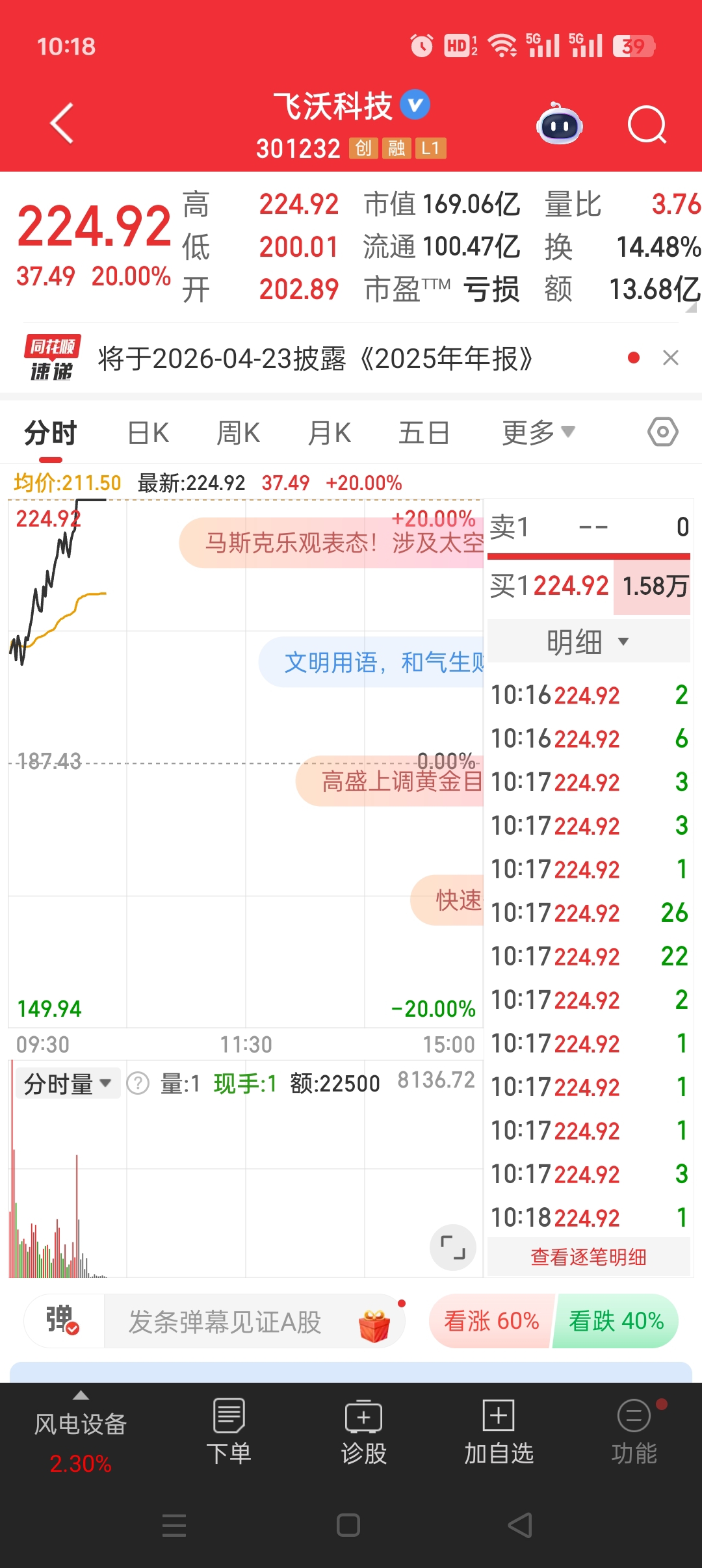 我哭一会,哭一会儿就好了$飞沃科技(SZ301232)$成功涨停
