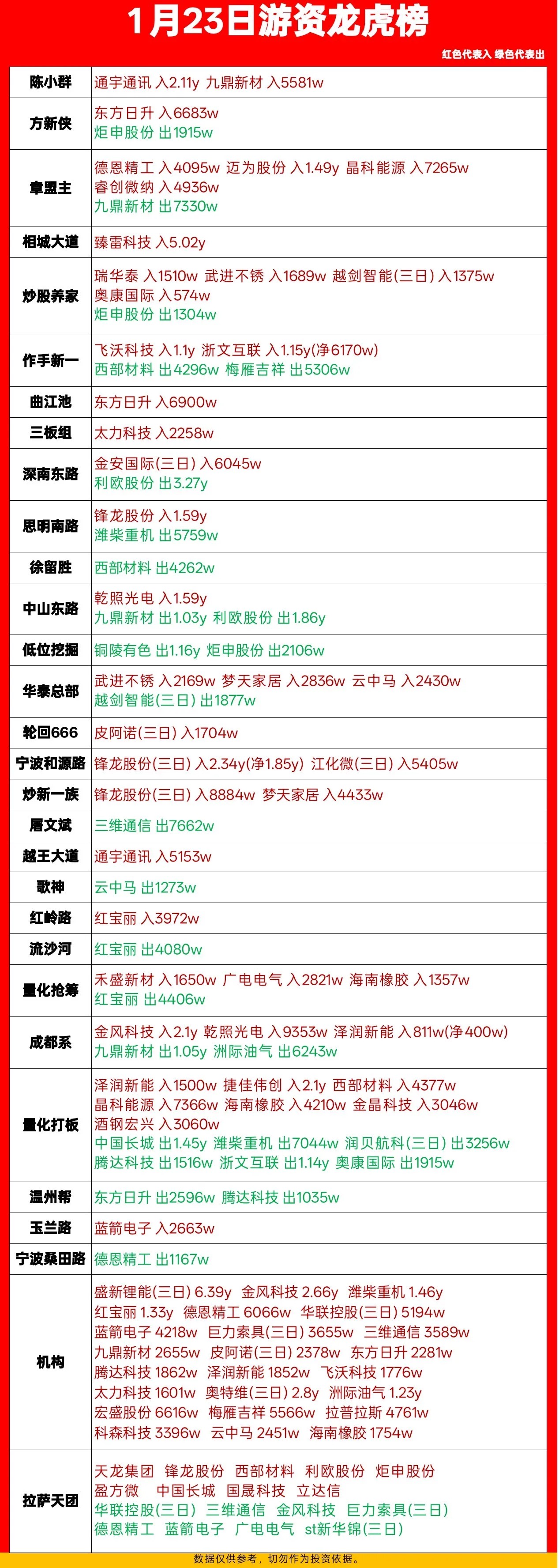 #强势机会# 1月23日游资龙虎榜:这些票被爆买爆卖!