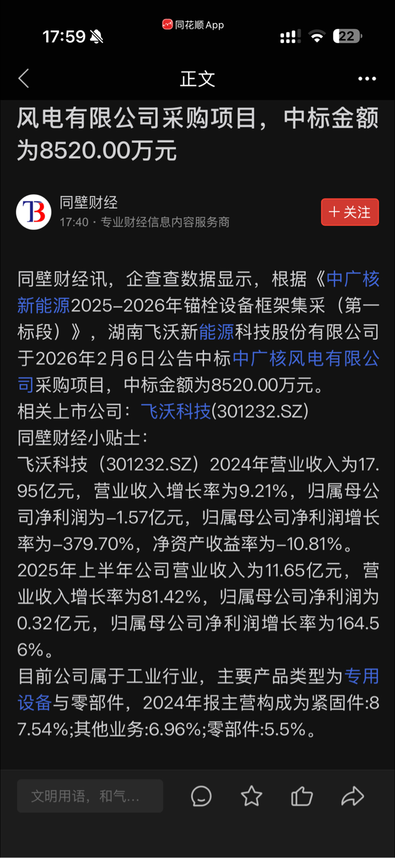 $飞沃科技(SZ301232)$