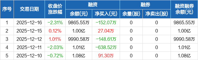 盛帮股份:融资净偿还152.07万元,融资余额9865.55万元(12-16)
