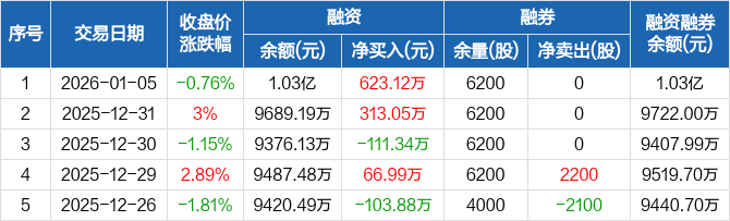 盛帮股份:融资净买入623.12万元,融资余额1.03亿元(01-05)