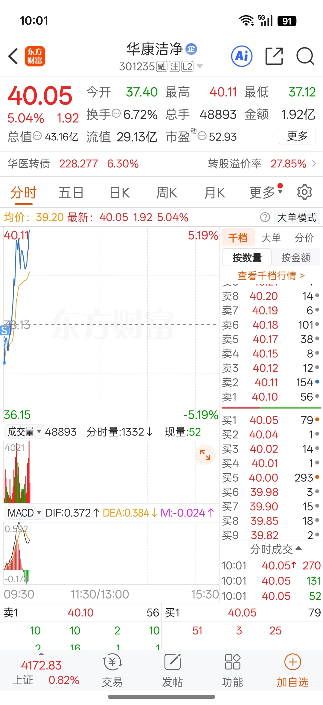 $华康洁净(SZ301235)$ 真缺德啊,开盘低开那么多,直接竞价就挂单卖了,你丫居然拉升起来了