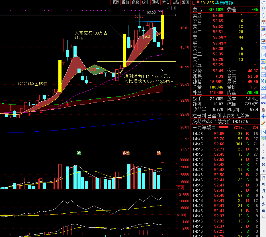 $华康洁净(SZ301235)$ 业绩预增公告,预计2025年实现归母净利润为1.14亿元至1.44亿元,同比增长70.63%到115.54%。