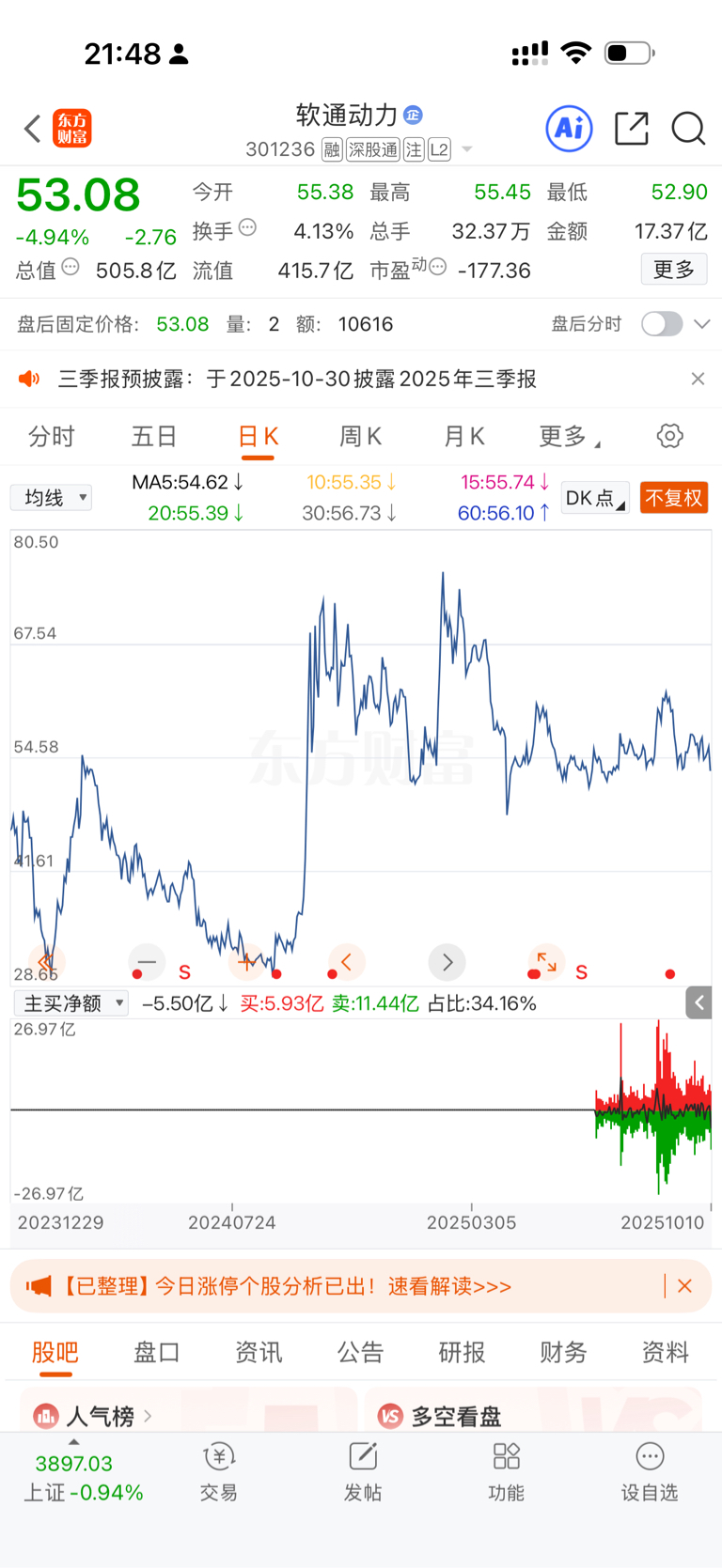 $软通动力(SZ301236)$ 看看这个图形你判断会怎么走