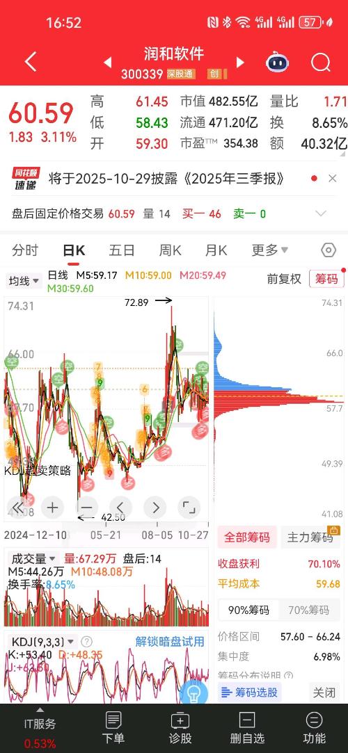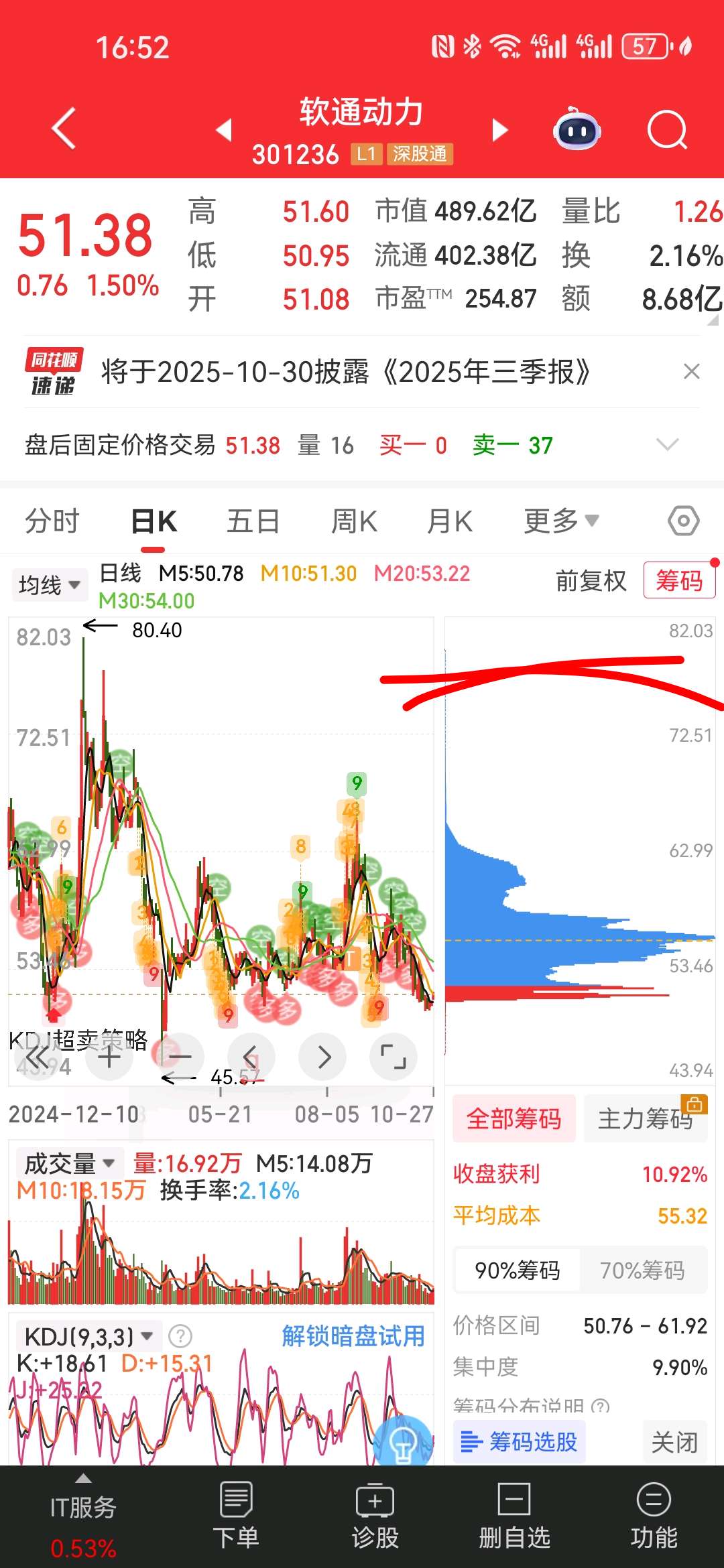 看这两个筹码峰对比,简直无语,软通的股东们是不是都躺平了。。。。